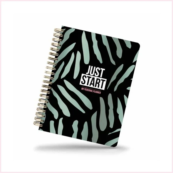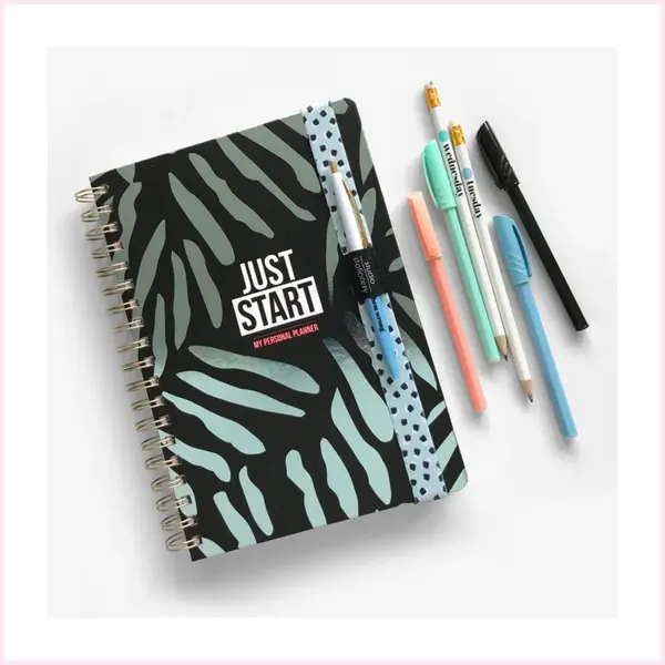 Deze planner heeft een hoes die voorzien is van een toffe petrol metallic en een neon accent.