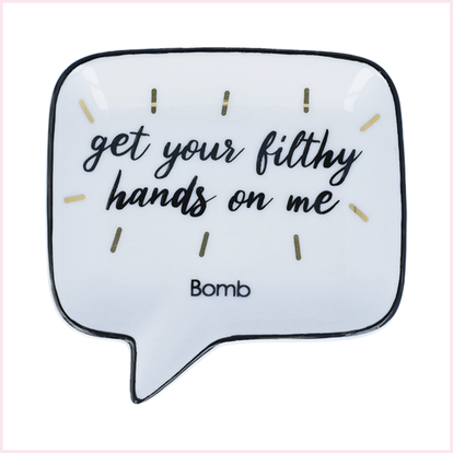 Geef je badkamer een vleugje humor met dit opvallende zeepbakje! De speelse tekst “Get Your Filthy Hands On Me” zorgt gegarandeerd voor een glimlach bij iedereen die zijn handen komt wassen.