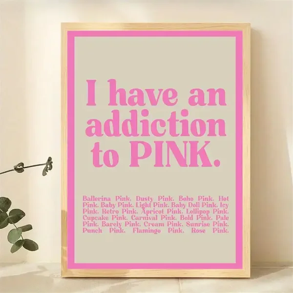 We love pink! Ben jij ook helemaal weg van roze? Dan is deze canvas poster met de tekst “I have an addiction to PINK” precies wat je zoekt! Perfect om jouw liefde voor roze op een stijlvolle manier in je interieur te verwerken. Deze poster is een echte eyecatcher en dé must-have voor iedereen met een passie voor roze!