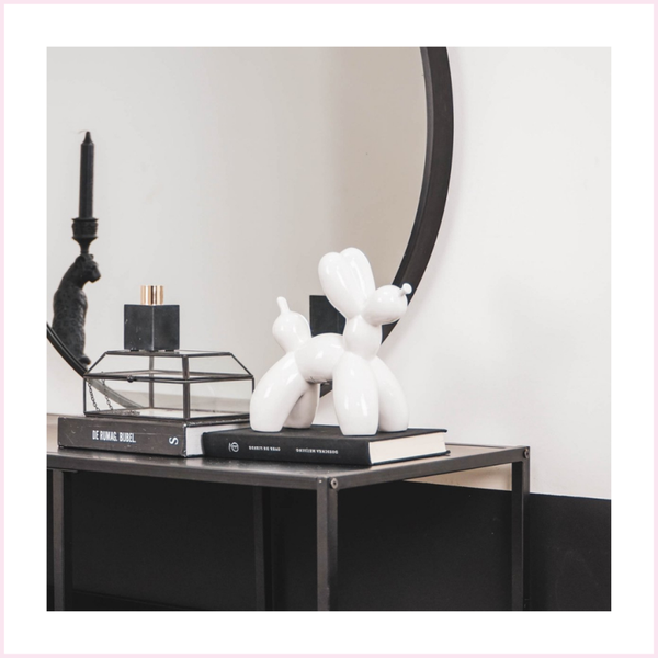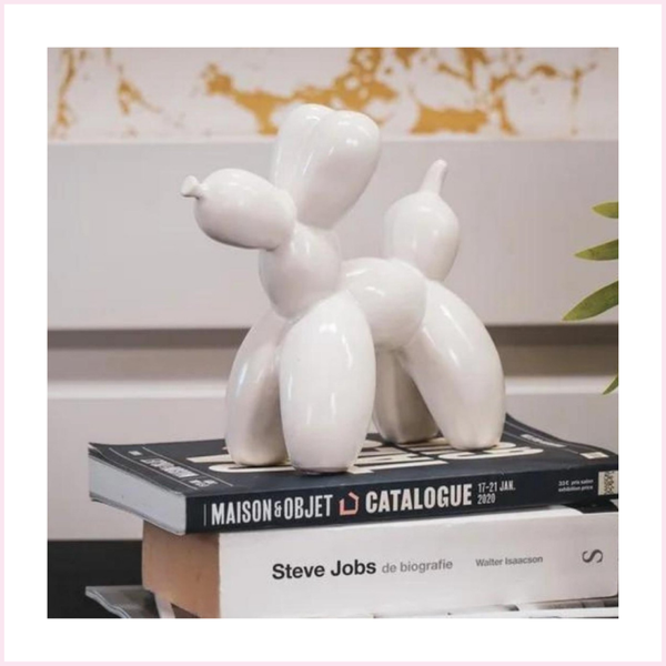 Deze te gekke ballon hond (gebaseerd op het ontwerp van Jeff Koons ‘the balloon dog') is modern, stylish en zeer populair! Of je nu een liefhebber bent van kunst of gewoon op zoek bent naar een opvallende accessoire, de ballon hond is perfect om een vleugje elegantie aan elke ruimte toe te voegen. Hij past moeiteloos in verschillende woonstijlen, van minimalistisch tot klassiek. Daarnaast is het ook een geweldig cadeau idee voor speciale gelegenheden zoals verjaardagen of housewarmings. Het unieke ontwerp en de glanzende afwerking maken deze witte ballon hond een echte must-have!