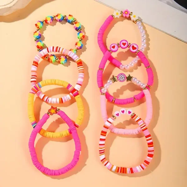 Ben je op zoek naar een stijlvolle en veelzijdige armbandenset? Deze 8-delige set is precies wat je nodig hebt! Met een prachtige combinatie van roze tinten en kleurrijke accenten straalt deze set veel vrolijkheid uit. De armbanden hebben onder andere hartjes, drakenfruit en bloemen. Perfect om te mixen en matchen voor elke gelegenheid, of je nu kiest voor een casual look of een feestelijke outfit. Voeg een vleugje kleur en persoonlijkheid toe aan je sieradencollectie met deze unieke armbanden!