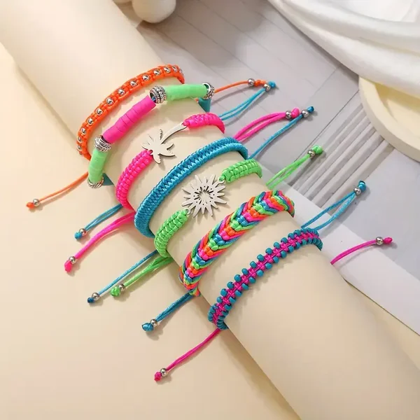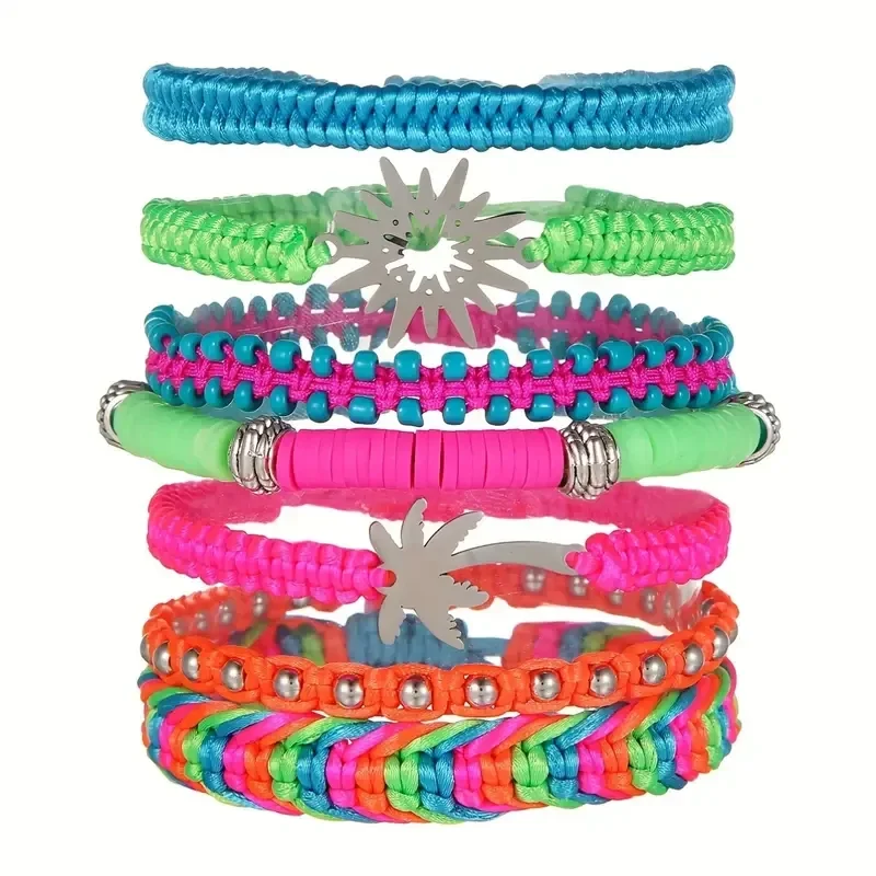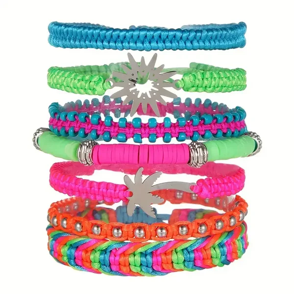 Geef je outfit een trendy en speelse touch met deze prachtige armbanden set. De set bestaat uit 7 kleurrijke armbanden, perfect voor een boho chic uitstraling. Elke armband is uniek en samen vormen ze een opvallende mix van patronen, kleuren en materialen. Deze set is ideaal om te dragen tijdens festivals, een dagje uit of gewoon om je dagelijkse look op te fleuren. Combineer de armbanden naar eigen smaak of draag ze allemaal samen voor een opvallend effect. Laat je inspireren door de kleurrijke bohemian vibes en maak een stijlstatement met deze veelzijdige armbanden set!