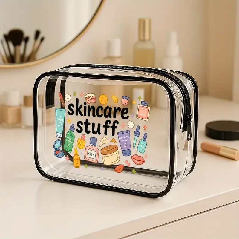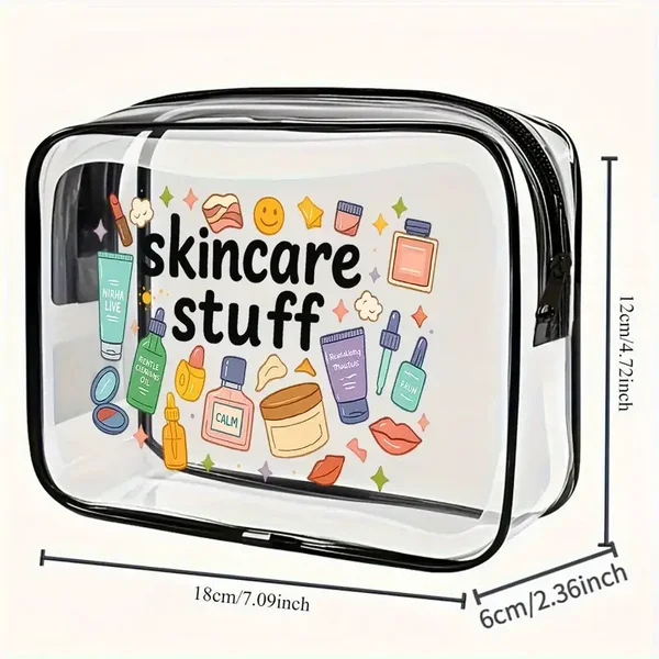 Organiseer je skincare essentials handig en stijlvol met onze transparante opbergtas voorzien van de tekst "Skincare Stuff". Deze praktische tas biedt niet alleen overzicht dankzij het doorzichtige materiaal, maar beschermt ook je favoriete producten tegen stof en morsen. Perfect voor thuisgebruik of om je verzorgingsproducten mee te nemen op reis. Dankzij het compacte en duurzame ontwerp past de tas makkelijk in je badkamerkastje of koffer. Een onmisbaar item voor iedereen die zijn skincare routine georganiseerd wil houden